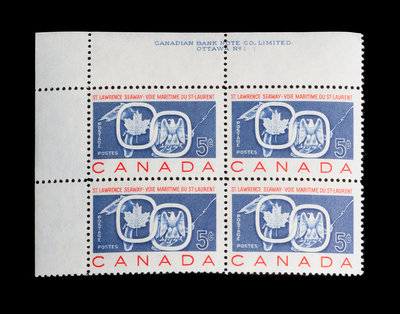 A Group of Four Canada 1959 St. Lawrence Seaway Imprint Block of Four Stamps