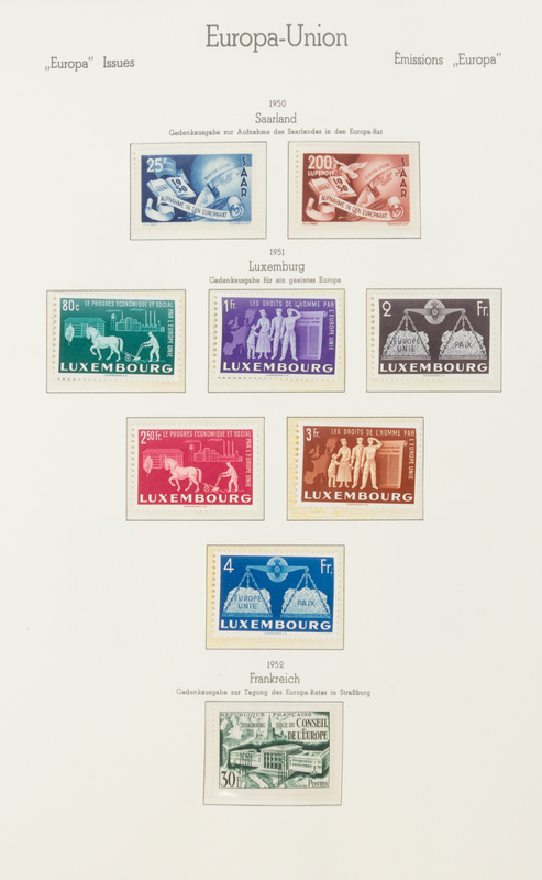 comprising Europa Issue examples from: Italy, Germany, Germany, Greece, Saarland, Luxembourg, France, Belgium, Turkey, Portugal, Netherlands, Denmark, Finland, Iceland, Norway, Sweden, Switzerland, Austria, Great Britan, Ireland, Spain and Monaco.