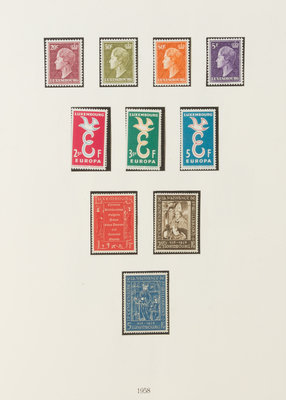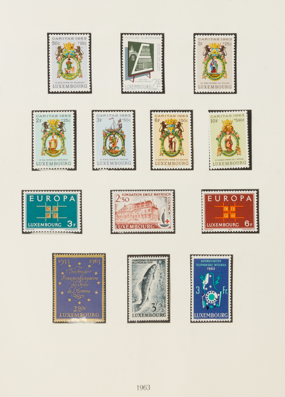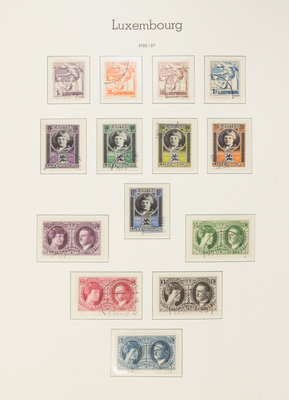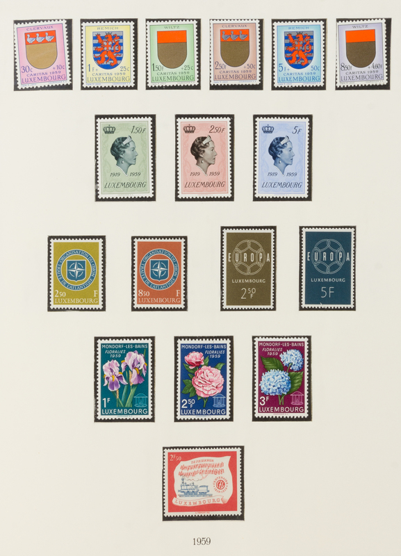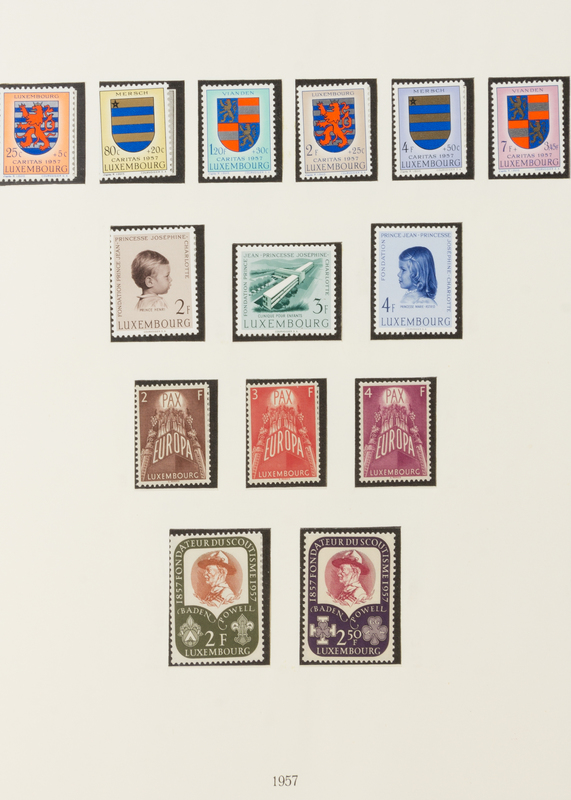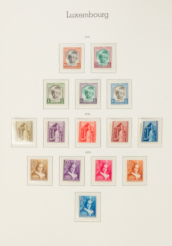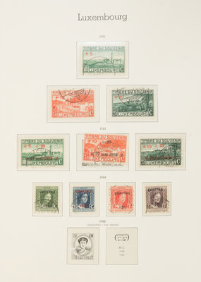 comprising:a set of three 1921 WWI Monument charity stamps (canceled),a set of three 1923 WWI Monument charity stamps (canceled),a set of four 1924 Grand Duchess Adelheid Memorial charity stamps (canceled),a set of four 1925 Tuberculosis Awareness stamps (canceled),a set of ten 1927 Royal Family charity stamps (canceled),a set of five 1928 Princess Marie-Adelaide charity stamps, a set of five 1931 Princesse Alix charity stamps,a set of five 1932 Ermesinde charity stamps,a set of five 1933 Henri VII charity stamps,a set of six 1931/33 Breuget Plane stamps,a set of six 1934 Joan of Arc charity stamps, a set of six 1935 Charlest 1st charity stamps, a set of fifteen 1935 International Movement for Intellectual and Cultural Affairs (canceled),a set of six 1936 F.I.P. Philatelic Week stamps (canceled),a set of six 1936 Wenceslas I charity stamps, a set of six 1937 Wenceslas II charity stamps (canceled), a set of six 1938 Sigismond charity stamps,a set of six 1938 St. Williboro Memorial charity stamps (canceled),a set of ten 1939 Centennial of Independence stamps,a set of six 1939 Royal Family charity stamps,a 1940 Allegory of Medicinal Baths 2-franc charity stamp,a set of five 1945 Our Lady of Luxembourg charity stamps,a 1945 Our Lady of Luxembourg 50-frnc charity mini-sheet.a set of four 1945 Liberation stamps, a set of four 1945 Heroes and Martyrs charity stamps,a minisheet of four 1946 Heroes and Martyrs charity stamps,together with other modern issues dating 1946-1967