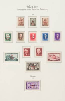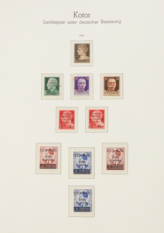 comprising examples from: Albania (1943 & 1944), Belgian Walloon Legion (1943), France Legion Des Volontaires Grancais Contre le Bolchevisme (1942), Kotor (1944 Overprints), Macedonia (1944 Overprint), Serbia (1941 Overprint), Serbia (1941 Perforate and Imperforate sheet), Serbia (1942 airmail overprint).