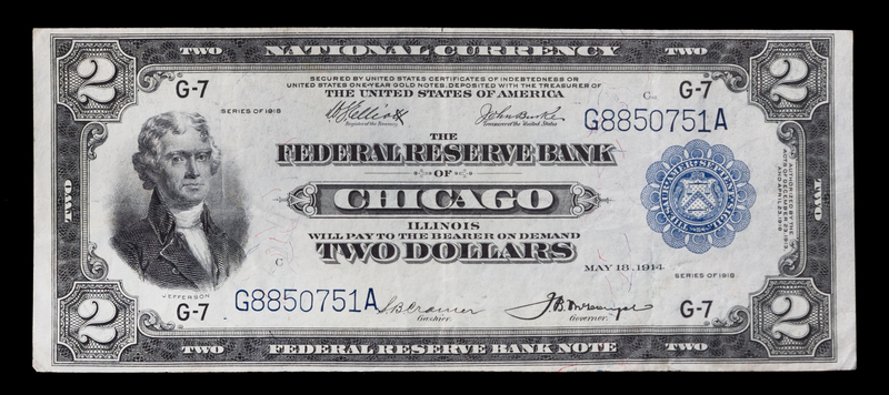 A United States 1914-G $2 Battleship Federal Reserve Bank Note