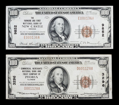 Two United States 1929 Type-1 $100 National Bank Notes