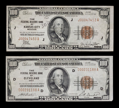 Two United States 1929 $100 Federal Reserve Bank Notes