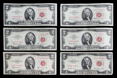 A Group of Six United States $2 Legal Tender Replacement Notes