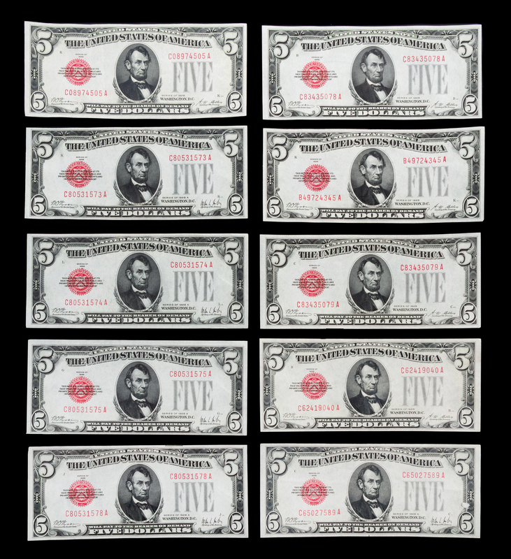 A Group of Twelve United States $5 Legal Tender Notes