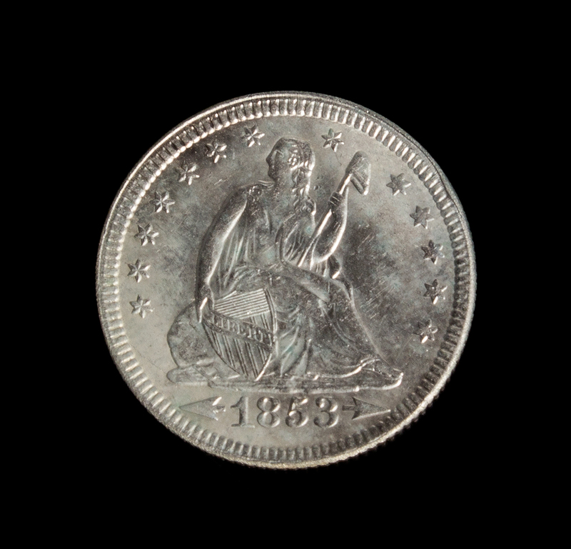A United States 1853 Seated Liberty Quarter-Dollar Coin