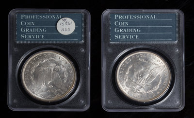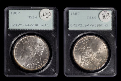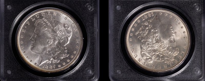 Two United States 1887 Morgan Silver Dollar Coins