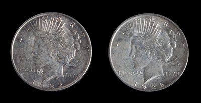 A Pair of United States 1922-D Peace Silver Dollar Coins