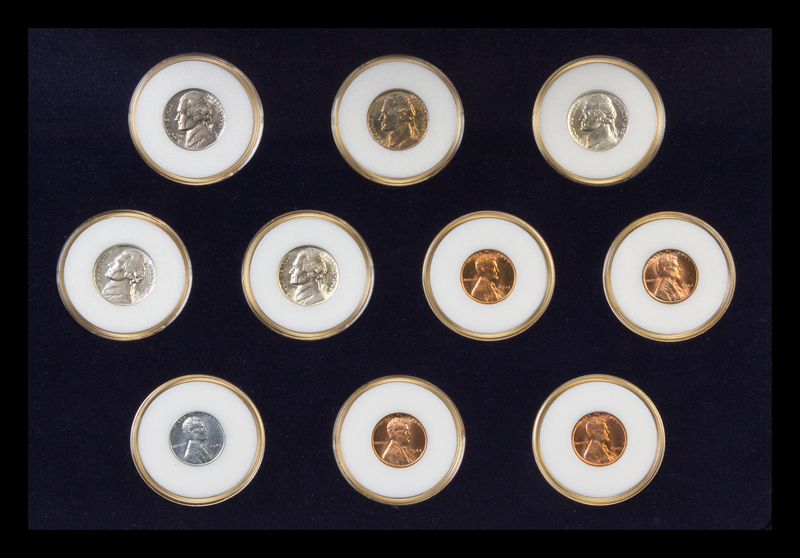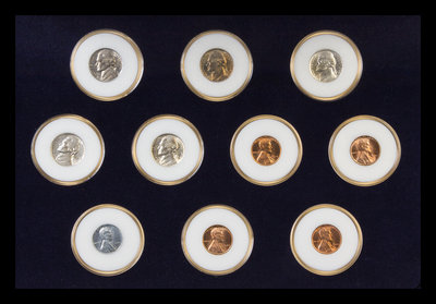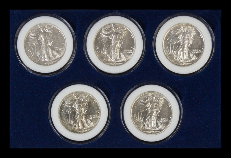 comprising a Liberty Half-Dollar, Washington Quarter, Mercury Dime, Jefferson Nickel and a Lincoln Back Penny from each year, together with three additional sets of five Walking Liberty Half-Dollars.