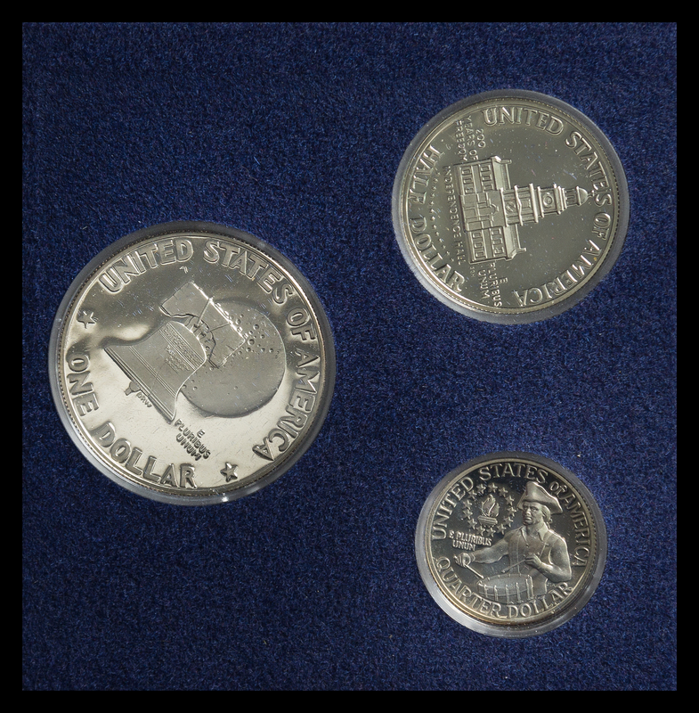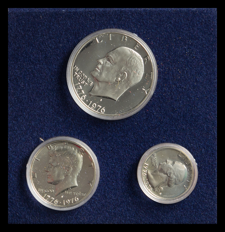 comprising an Eisenhower dollar, Kennedy half-dollar and a Washington quarter.