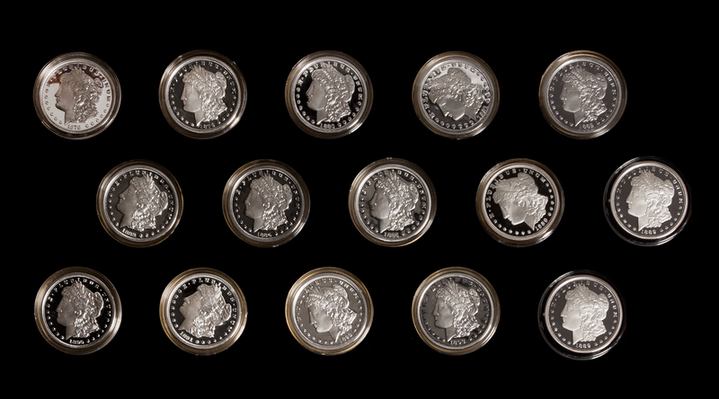 A Group of 15 Reproduction Morgan Silver Dollar 1 Ounce Silver Rounds