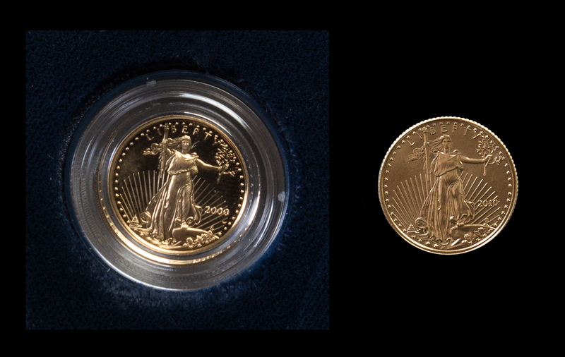 Two United States Mint 1/10 Ounce Gold Eagle Rounds