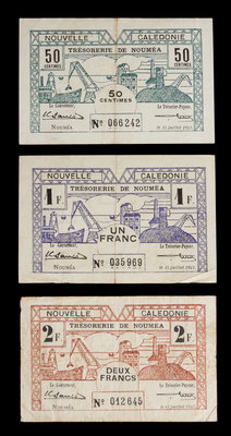 comprising 50 centime, 1 franc and 2 franc notes. (SCWPM # 51, 52, 53).
