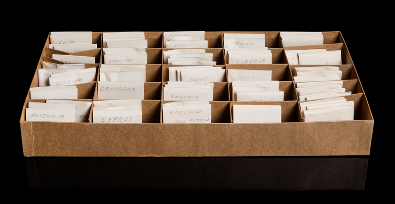 comprising examples from: Austria, Australia, Belgium, Brazil, Cuba, Chile, China, Curacao, Cyprus, Denmark, England, Egypt, France, West Germany, Hungary, Italy, India, Japan, Luxebourg, Morocco, Mexico, Netherland, Newfoundland, Netherlands, Oceania, Panama, Phillippines, Pakistan, Spain, Switzerland, Russia, South Africa, Sweden, Venezuela, Vatican City and Yugoslavia, the majority from mid-20th century and later.