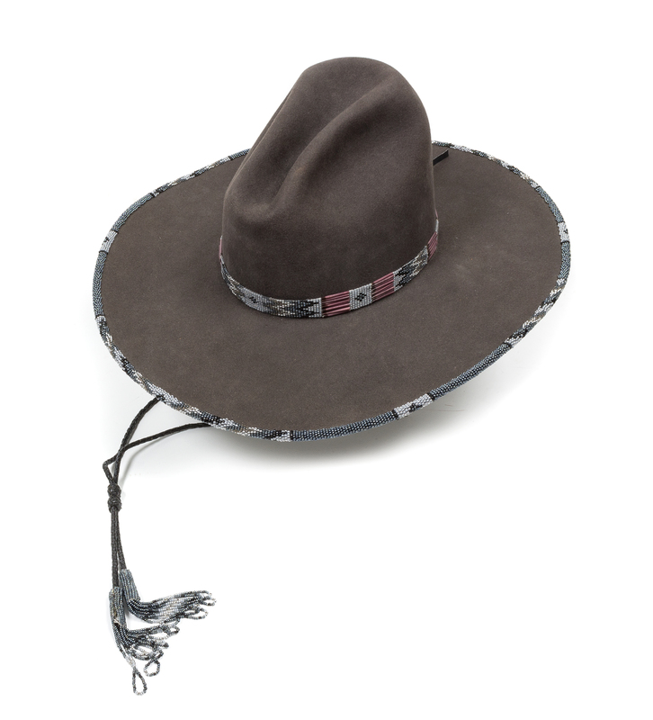 with beaded hat band, rim and tasseled wind strap, 10 X Beaver.