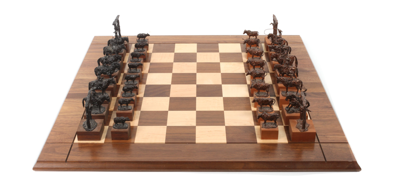 A Brown Patinated Metal "Range War" Chess Set, Leigh Aldrich, 1991