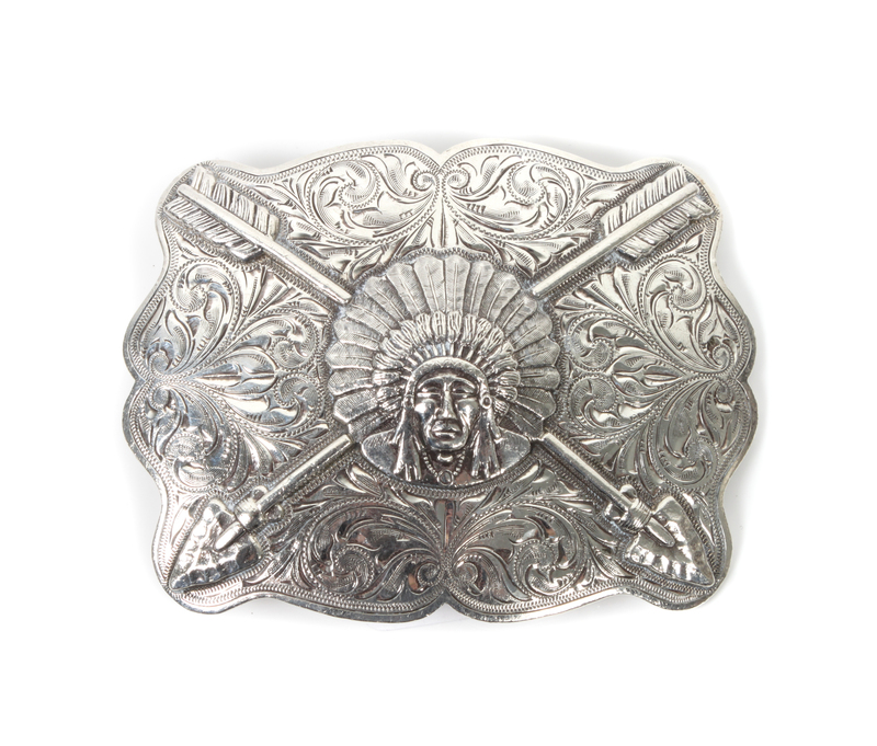 Edward H. Bohlin, Hollywood, CA Sterling Silver Indian Chief Trophy Belt Buckle