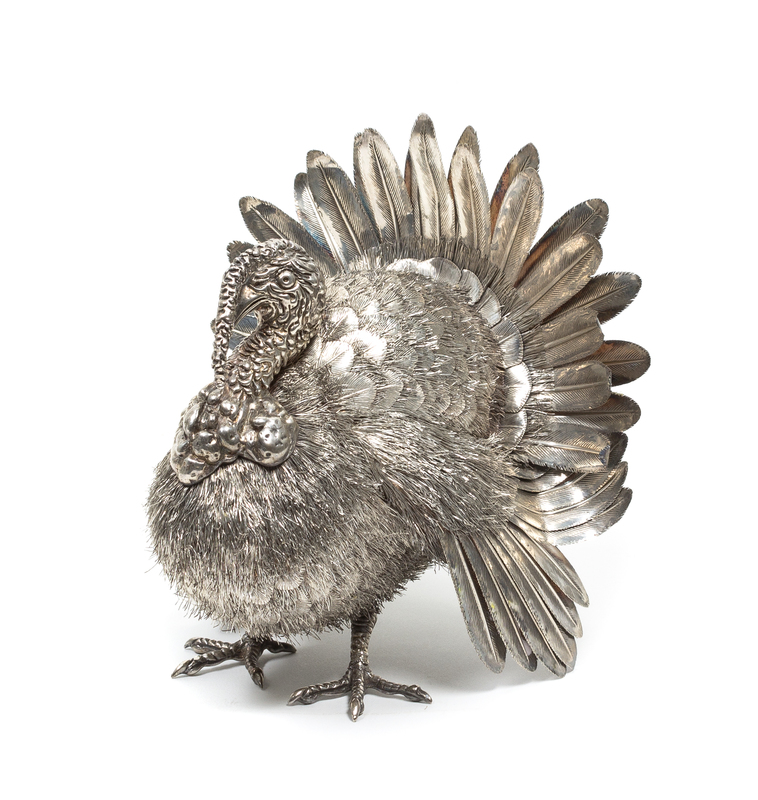 An Italian Silver Wild Turkey Figurine, Nava & Nencini