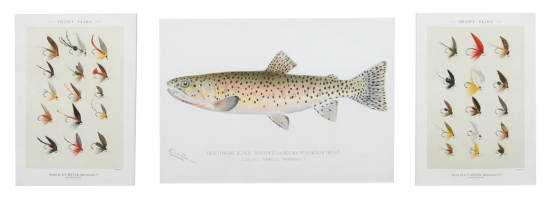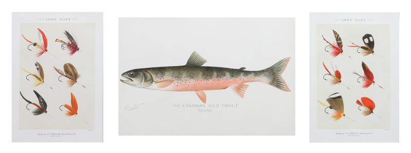 flanked by two images of Trout Flies by M. Bradley Lith., Co. together with The Canadian Red Trout (Young) flanked by two images of Lake Flies by M. Bradley Lith., Co.