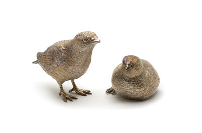Two English Sterling Silver Bird Figurines, Asprey,
