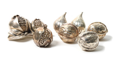 Seven Silver Figural Fruit and Nuts, Alessandro Magrino
