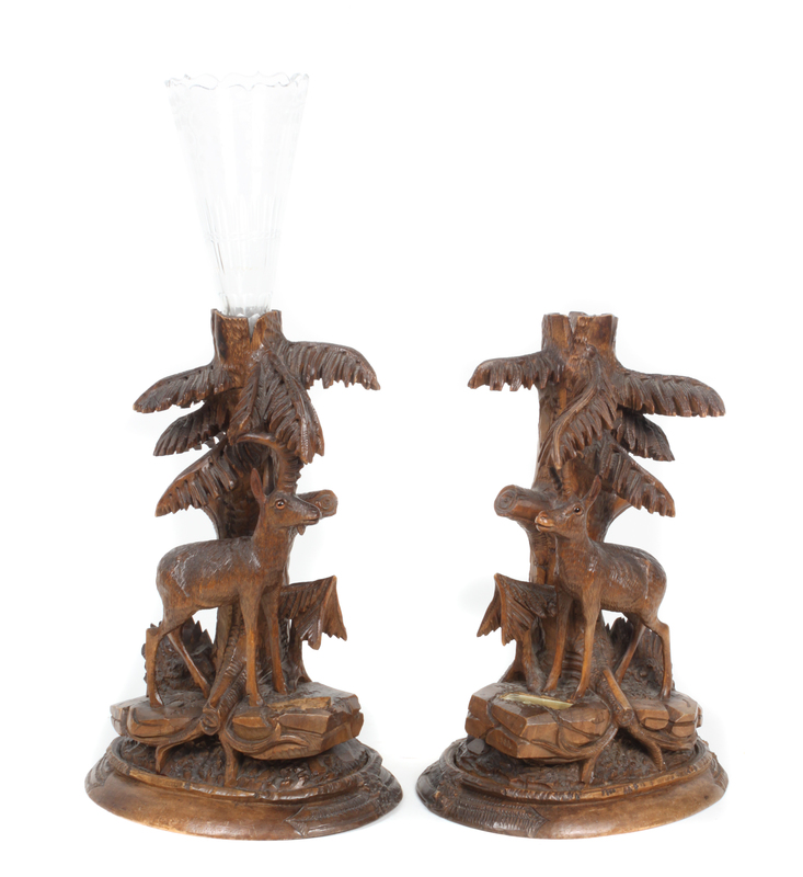 A Pair of Black Forest Style Carved Wood Candle Bases