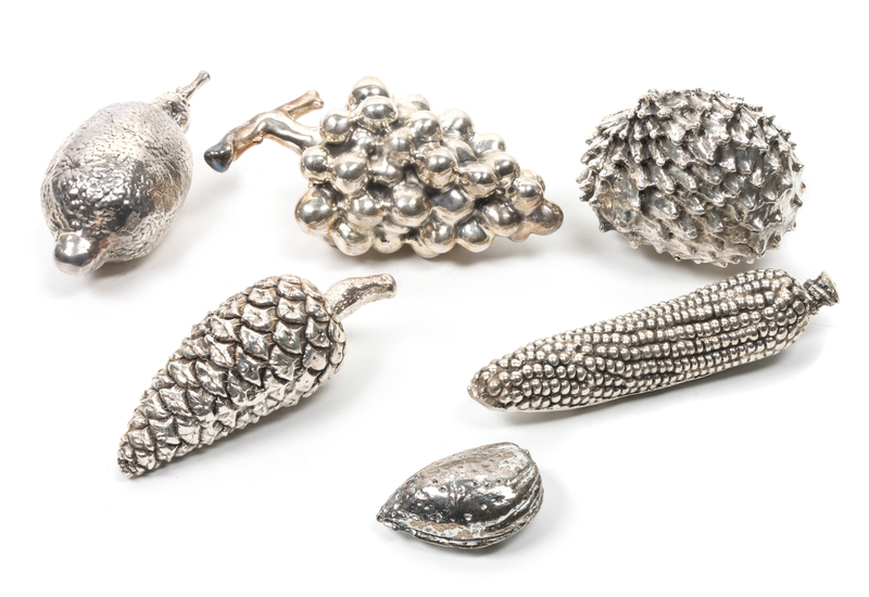 Six Continental Sterling Silver Weighted Fruit and Nut Figurines