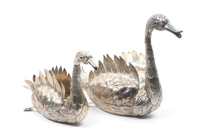 Two Continental Silver Swan Figurines