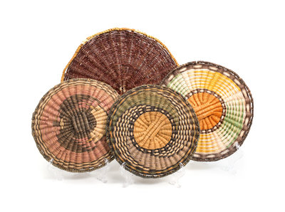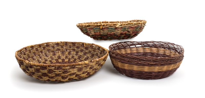 together with three wicker basket bowls.