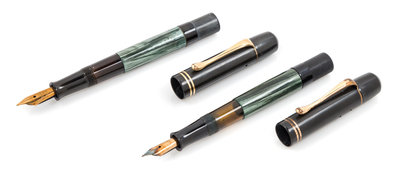 each having a green marbled finish with 14-karat gold Pelikan nibs.