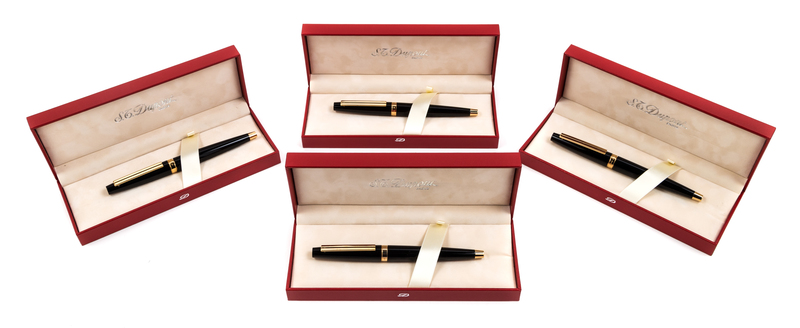 each with gold-plated clip, center-band and end cap, having an S.T. Dupont display case with certificate and papers.