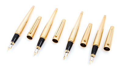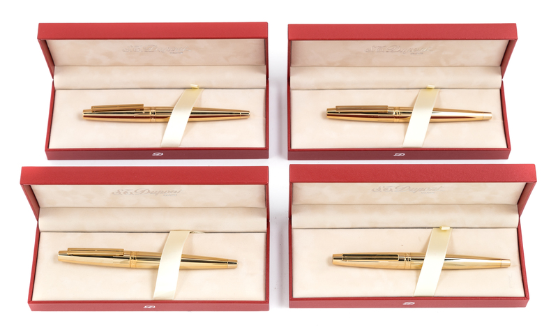 A Group of Four S.T. Dupont Gold-Plated Ellipsis Fountain Pens