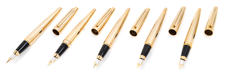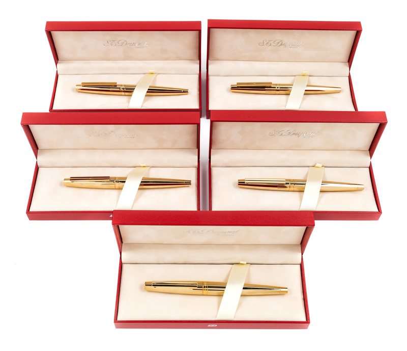A Group of Five S.T. Dupont Gold-Plated Ellipsis Fountain Pens