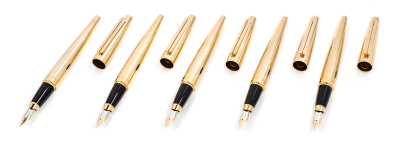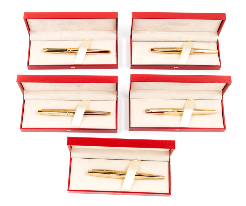 A Group of Five S.T. Dupont Gold-Plated Ellipsis Fountain Pens