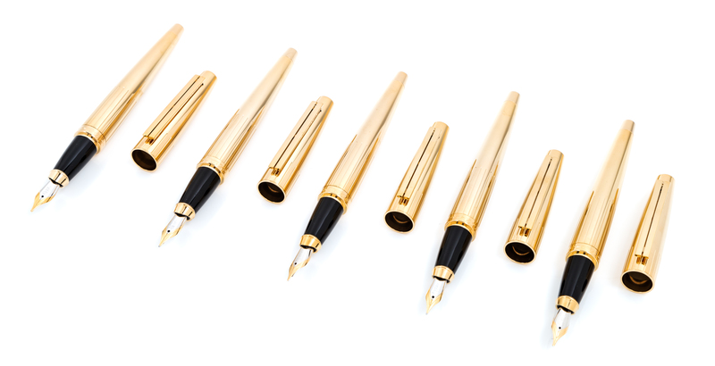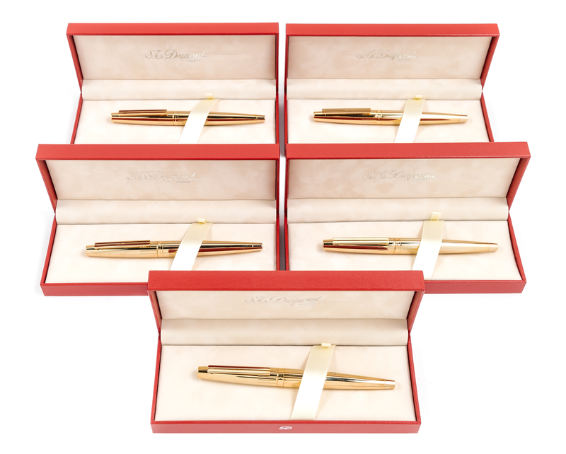 A Group of Five S.T. Dupont Gold-Plated Ellipsis Fountain Pens