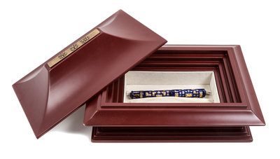 numbered 187/888 and having an 18-karat gold medium nib with a factory original box, display case in the form of a mausoleum and certificate with papers.