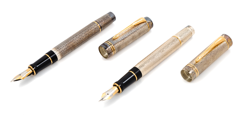 'Vintage' numbered 557/888 and 'Modern' numbered 548/888 and each having an 18-karat gold medium nib with a factory original box, display case and certificate with papers.