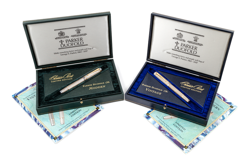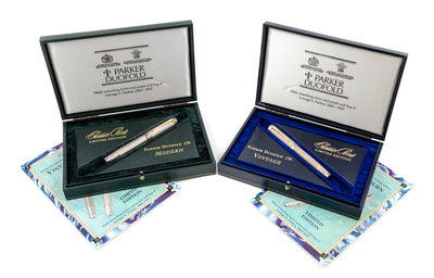 A Parker Duofold Classic Pens Vintage and Modern Celebration Limited Edition Two Pen Set