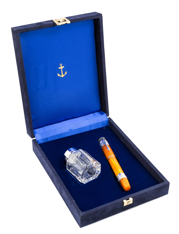 An Ancora Vesuvio Limited Edition Fountain Pen and Ink Well Set