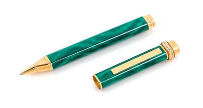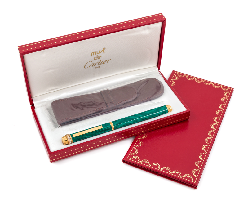 A Must de Cartier Gold-Plate and Simulated Malachite Roller Ball Pen