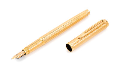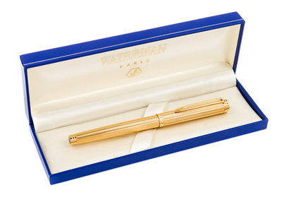 having an 18 karat nib, the case worked with a engine-turned wave decoration, inked.