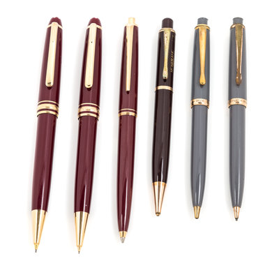 comprising a pair of burgundy cased Meisterstuck pencils, a burgundy cased mechanical pencil, a burgundy cased PIX '372' pencil and two grey cased PIX '376' examples.