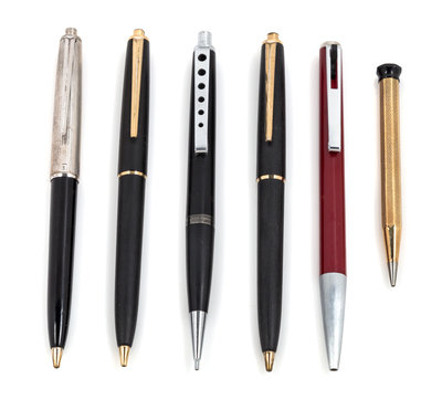 comprising four mechanical pencils, a gold-plate pencil and a roller pen.