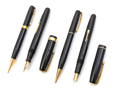 comprisng a 'W2' fountain pen and pencil set with black resin cases and a '515' fountain pen and pencil set with black resin cases, each having a Waterman's factory box.