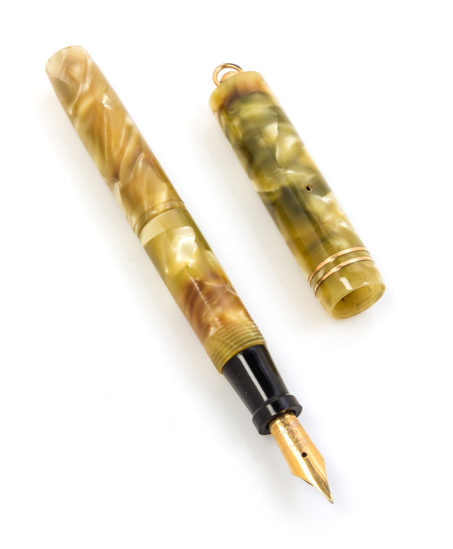 having a green and cream pearled resin case with a Leboeuf '#4' nib.