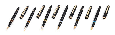 comprising a model '142', two 142G', '144, '252' and a '254' example, each having a 14-karat gold nib or varying sizes.