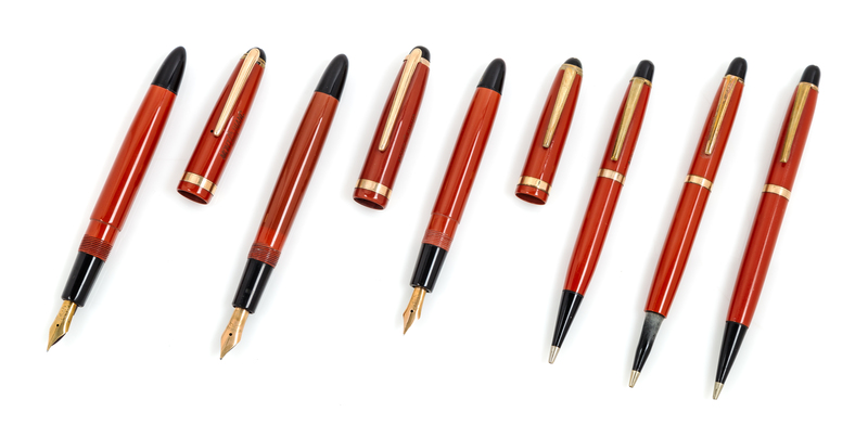 A Collection of Six Montblanc Coral Red Writing Insrtuments