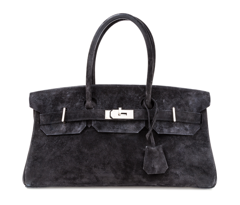 An Hermes 42cm Black Suede Shoulder Birkin Bag,