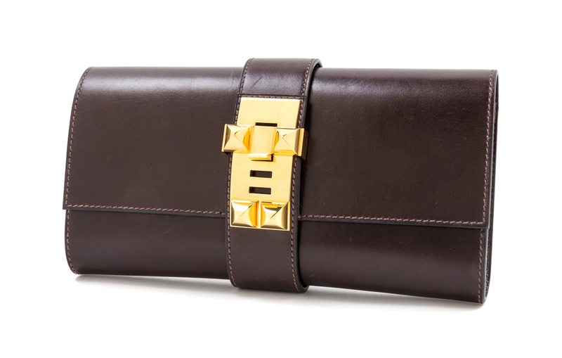 An Hermes 23cm Brown Box Calf Medor Clutch,