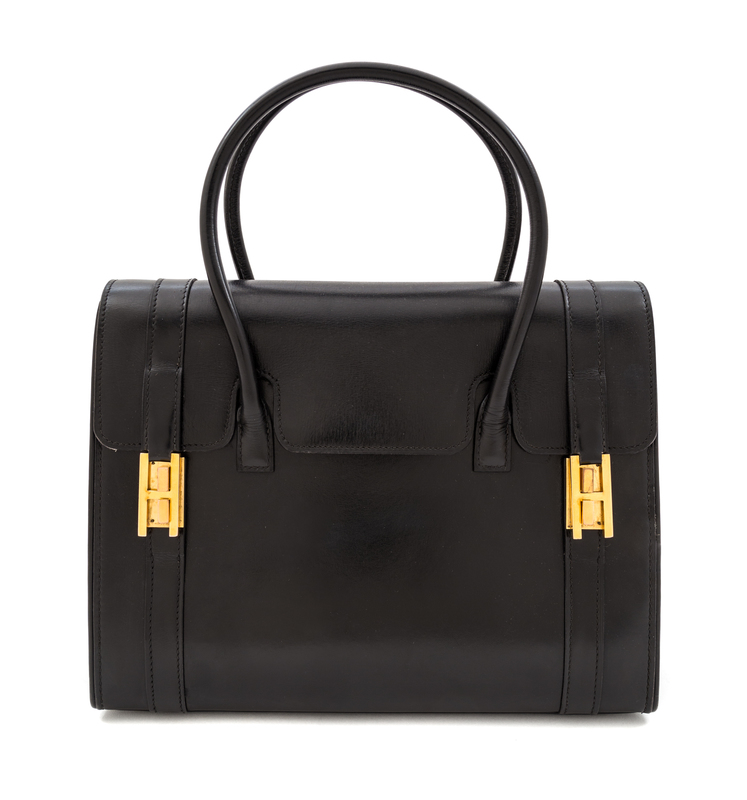 An Hermes Black Leather Drag Handbag,